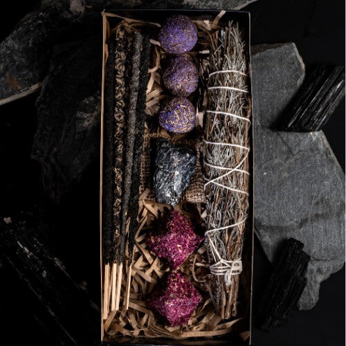 Incluye sahumos y sahumerios de lavanda, copal e incienso para purificar espacios y liberar tensiones, además de bombitas de defumación con lavanda y olíbano para relajar cuerpo y mente. Las pirámides energéticas de rosas ayudan a abrir el corazón y generar un ambiente de amor y calma 💖