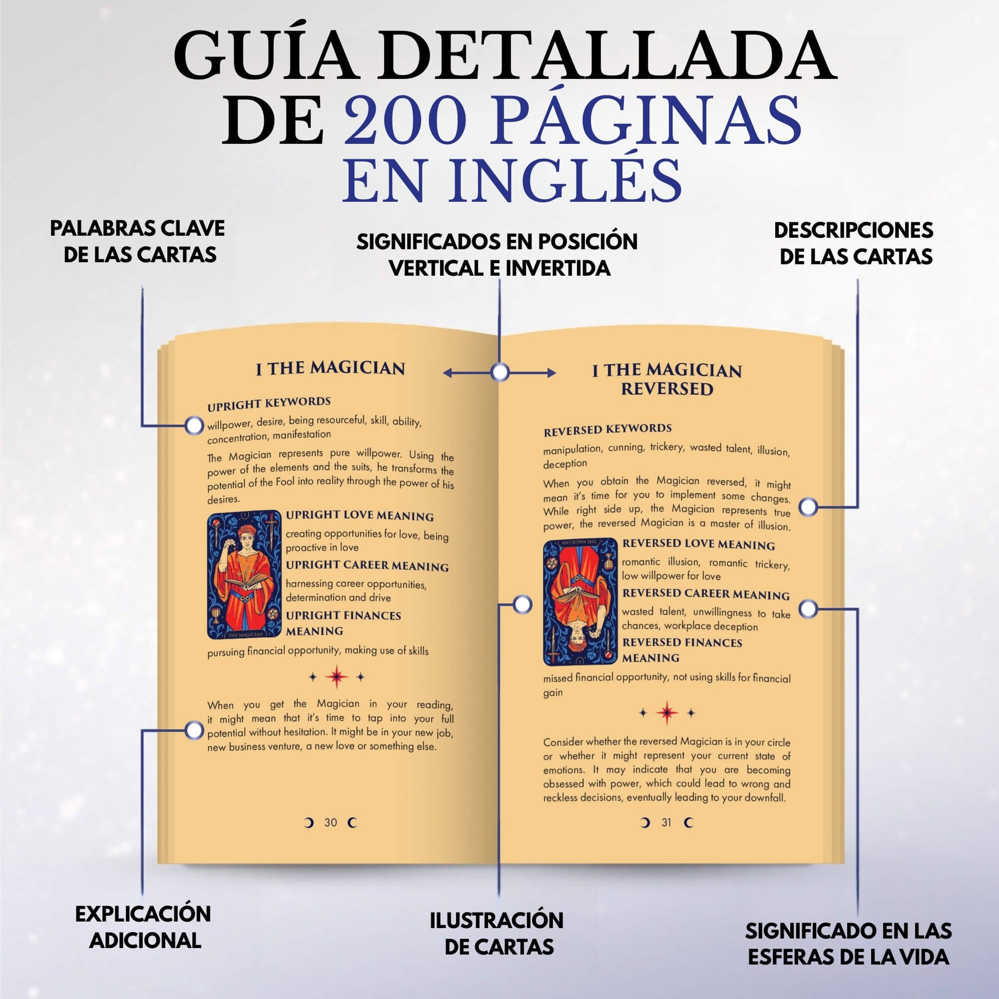Wyspell nos sorprende una vez más con este hermoso tarot que rinde homenaje al clásico Rider Waite. Al igual que sus últimos dos tarot (Paws Tarot y Wild Reflections tarot) este también fue un exitoso proyecto Kickstarter financiado totalmente en solo 1 día. Con bellos diseños y bordes dorados, Starlight Tarot es un mazo de lujo que debes tener en tu colección.